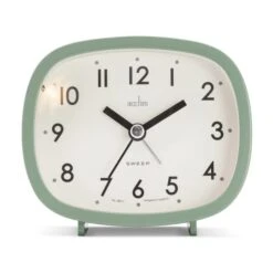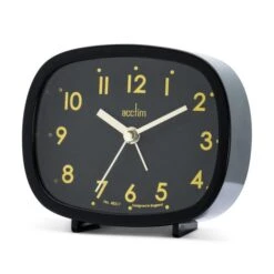 Retro style alarm clock with a non-ticking sweep seconds hand, alarm with snooze and light.