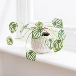 This striking artificial Peperomia plant has stunning variegated foliage and needs no watering or plant knowledge โ the realistic artificial leaves will add a splash of colour and a natural feel to your home with no maintenance required. It comes with a textured diamond pattern ceramic plant pot, making this an instant and versatile dรฉcor piece.