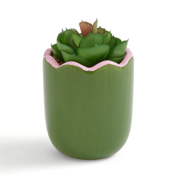 Add a pop of greenery to your space with this compact artificial plant, perfect for desks, shelves, or countertops. Housed in a stylish scalloped ceramic pot with a contrasting rim, its two-tone design suits a variety of interiors, from minimalist to coastal. Completely hassle-free, this plant requires no watering or maintenance, making it ideal for busy lifestyles or low-light spaces. It stays fresh all year round, bringing a lively touch to your home without any upkeep, and at just 7.5cm in diameter, itβs a versatile accent that works beautifully in offices, bedrooms, or even bathrooms. Effortless style in a small but impactful package.