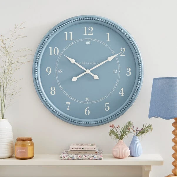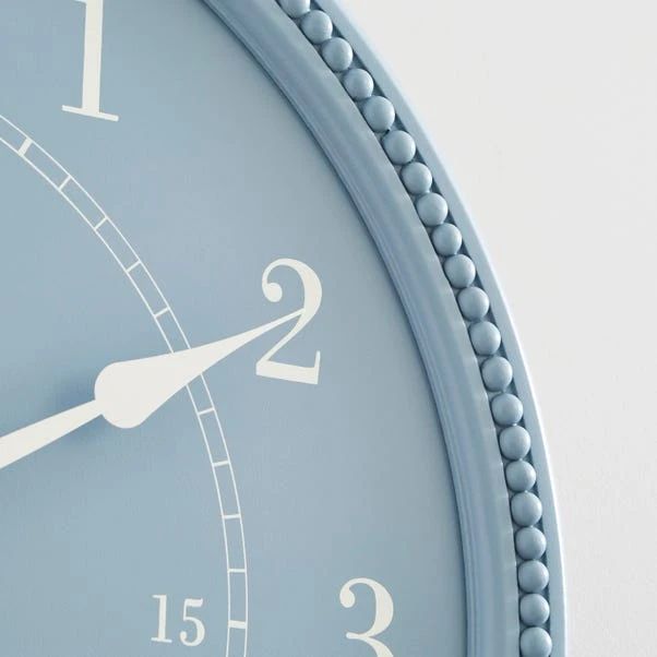 This wall clock is part of the Bobbin range, all featuring a fun large bubble design. Coordinate your look with other items available. In a soft blue colour, this clock is designed to hang on the wall using the keyhole on the back, and has large, clear numbers for easy reference. Its soft pastel colour would be a lovely addition to a boho style interior, and best of all, it has a silent movement – no annoying loud ticking here!