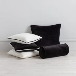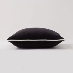 Beautifully crafted with a cover made from a quality 100% cotton velvet, this plain black cushion features a smart, contrast piping detail in white, adding a welcoming touch to your living areas. Filled with a feather insert for ultimate comfort, this cushion is available in a range of stylish colours to complement your home decors.
