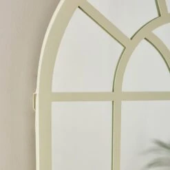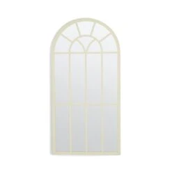 Bring an element of design to both your indoor and outdoor space with this elegant arch wall mirror. In a timeless window-effect mirror accented in a fresh cream finish. Made from strong and sturdy iron which has keyhole hooks at the back to seamlessly hang to your wall.