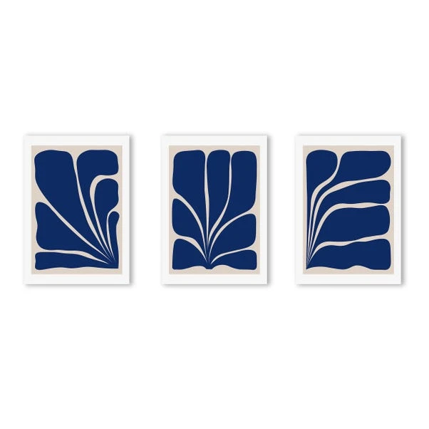 Adorn your walls with the captivating allure of ‘Navy Plant Triptych’ by Alisa Galitsyna. Rich in depth and texture, this triptych celebrates the organic beauty of plant life in a mesmerising navy palette.