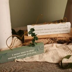 ‘The greatest thing you’ll ever learn is just to love and be loved in return’ – this beautiful sentiment is featured within a printed leaf design on this wooden plaque. With gold toned ‘Love’ lettering above, this plaque would make an ideal wedding gift and is sure to be displayed proudly in the happy couple’s home.