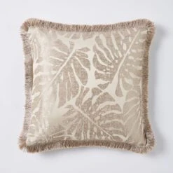 Featuring a beautiful palm leaf design on rich jacquard fabric, this cushion is perfect for elevating your home interior. Filled with feather, this sophisticated cushion is wonderfully plush allowing you to fully unwind in optimum comfort. Adding to the sense of luxury of this piece, a beautiful metallic fringe surrounds the border of the cushion. Sporting a removable and machine washable cover, the piece can be washed at home making for extra convenience.