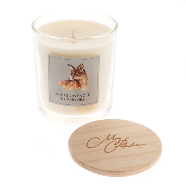 Illuminate your space with the soothing fragrance of the Meg Hawkins White Lavender & Chamomile Fox Candle. The delicate floral blend of aromatic white lavender, lily of the valley, and jasmine is complemented by the sweet embrace of chamomile. The base notes of sandalwood and musk add a comforting warmth.