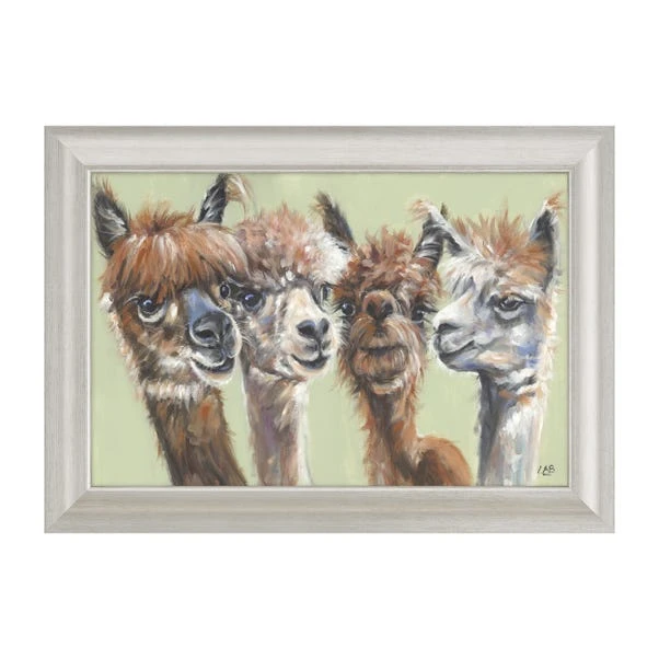 This Mop Tops Framed Print offers a champagne coloured frame with a soft gold brush stroke effect, housing a humorous animal artwork by Louise Brown. With a textured finish on the print and ready to hang, it brings a touch of whimsy to your walls.