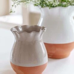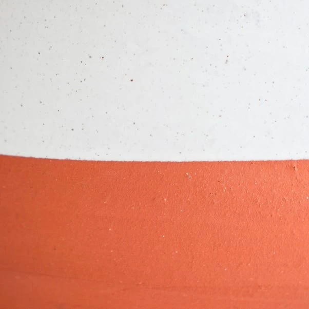 The Ivyline Moreton Scalloped Vase is the country classic your dining table needs. Adding an updated shine, the luxurious reactive glaze makes it sparkle and reflect in the light and its terracotta base gives it a rustic country look. Handmade in Europe, this colour block vase in natural terracotta has been carefully crafted by an expert potter. Finished with an attractive scalloped edge for added interest and treated with a premium glaze for lasting impact, this vase is perfect to showcase any coloured flowers, dried or fresh!