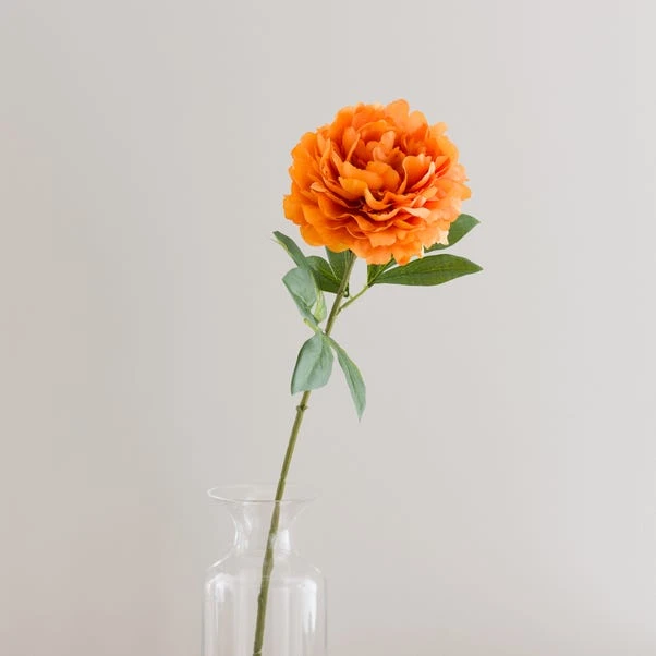 Bring a burst of colour into your home with this striking orange peony stem. Its vibrant hues and realistic design make it an eye-catching addition to any room, while its low-maintenance nature means it stays beautiful all year round. This colourful stem is the perfect way to add a touch of floral elegance to your space, whether displayed on its own or mixed with other faux flowers for a truly stunning arrangement. Its versatile design makes it ideal for a variety of interior displays, from mantles to tables. Brighten up your home effortlessly with this gorgeous peony stem. A simple way to inject life and colour into any space.
