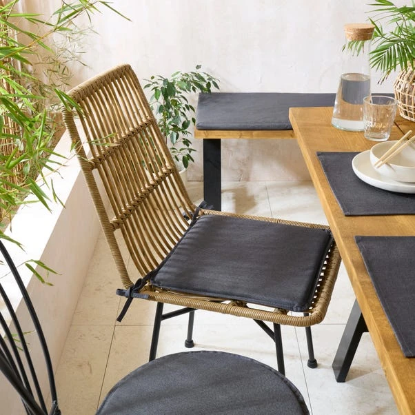 Add a touch of comfort to your garden seats with this simple polyester water-resistant seat pad with a comfortable foam filling. The cover has a wipe-clean surface so its suitable for outdoor and indoor use. Available in a range of colours to suit your outdoor furniture space. Good things come to those who coordinate, so why not pair this seat pad with the matching items available to purchase separately.