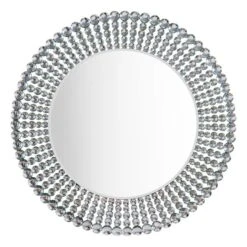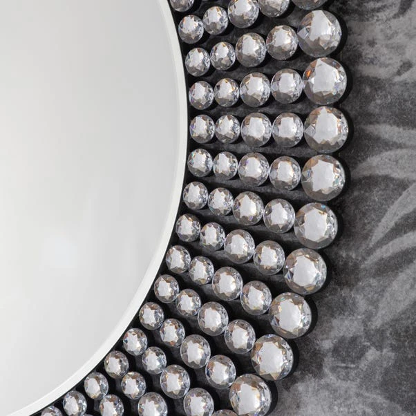 This glamorous Sheriton round mirror is perfect for adding light and luxury to your living space. This design features a central mirror framed with stunning clear jewels, making this a timeless statement mirror for your home.