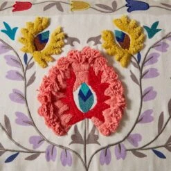 Introducing the Suzani Cushion. Its removable cover makes cleaning a breeze, ensuring your cushion stays fresh and vibrant. The modern embroidered floral design adds an artistic touch to your decor. Just remember, give it a gentle hand wash to keep it looking its best. It’s the perfect addition to elevate your space with style and sophistication.