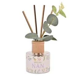 Indulge your beloved grandmothers with this refined and sophisticated diffuser, designed to be a decorative source of relaxation. Encased in a clear glass bottle adorned with a charming floral label, this diffuser comes pre-filled with a lifelike, coordinating faux flower. Four reed sticks are included to release a delightful fragrance, transforming any room into a soothing sanctuary.